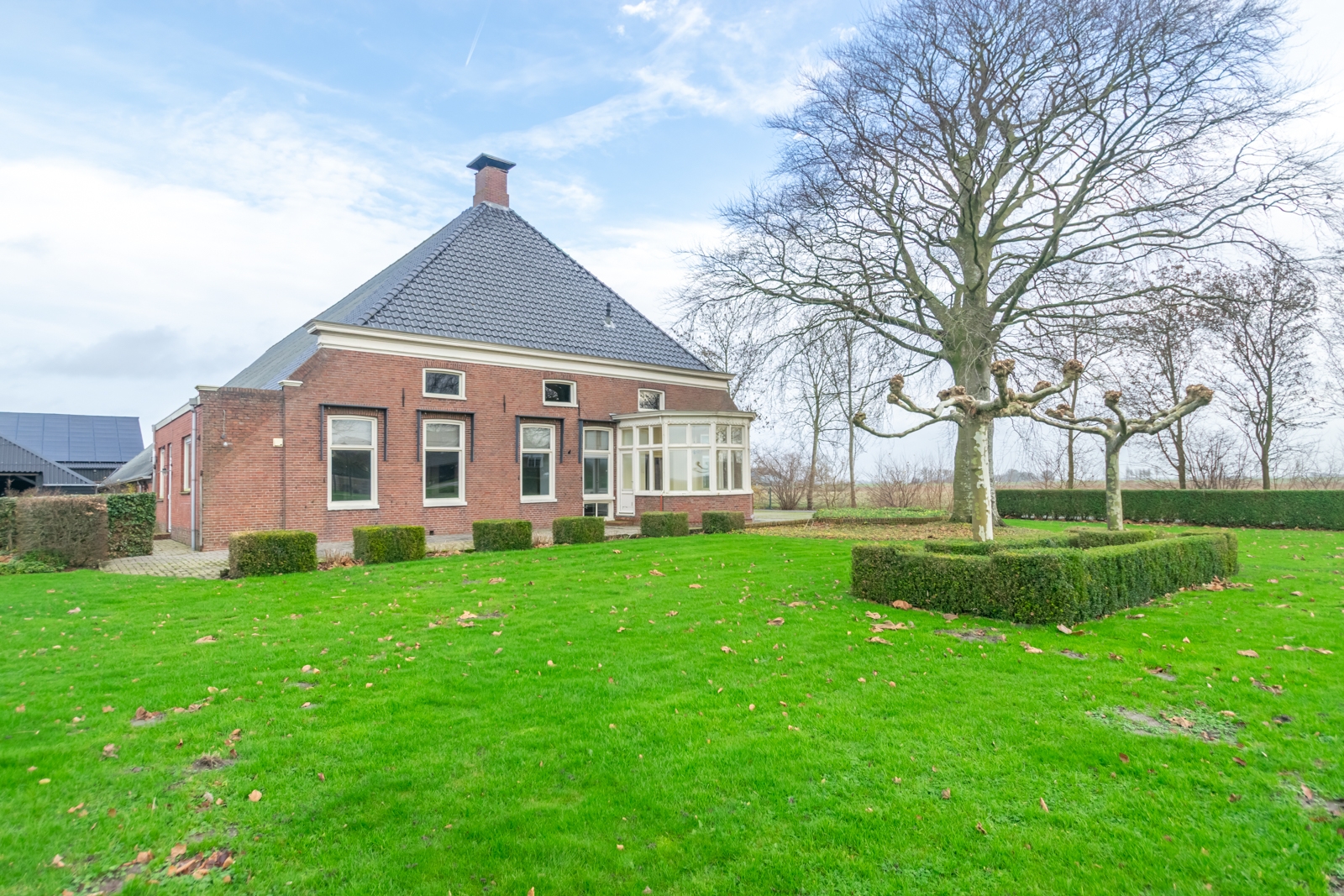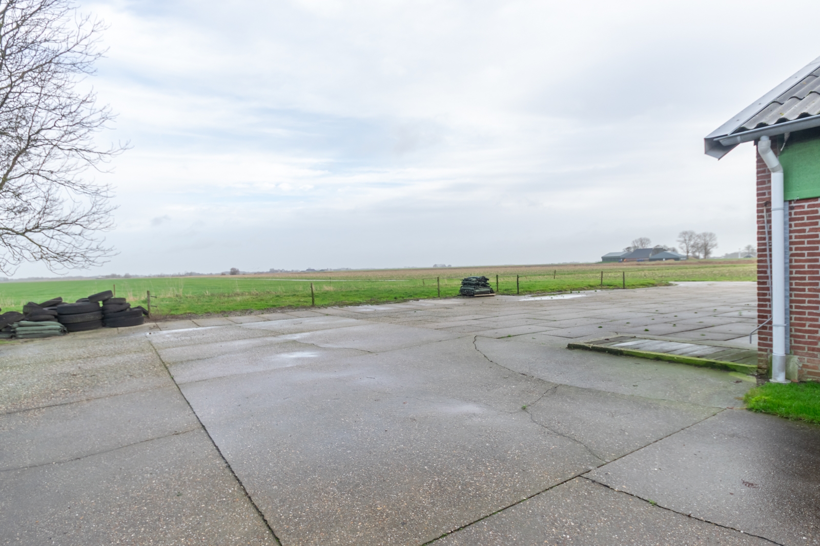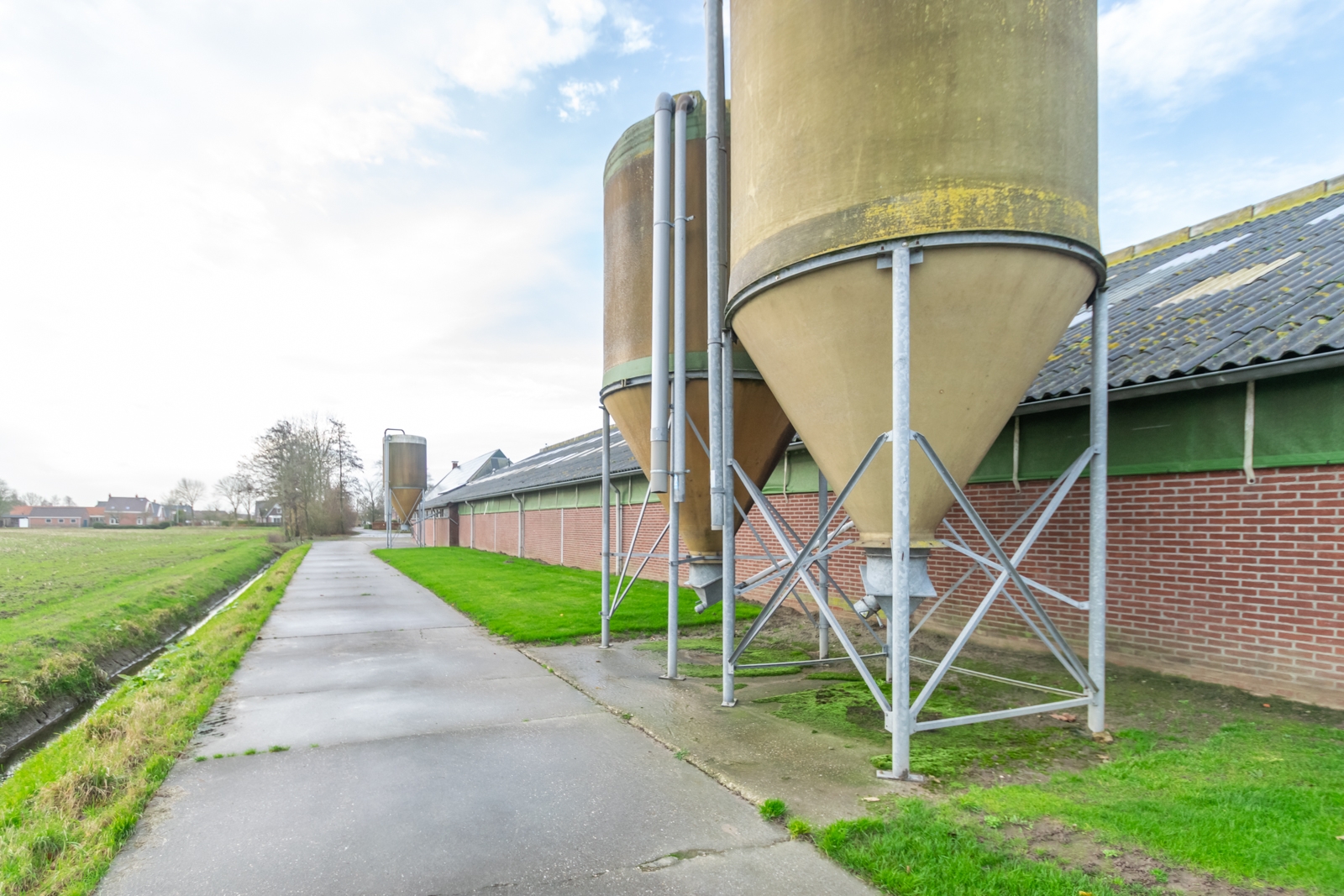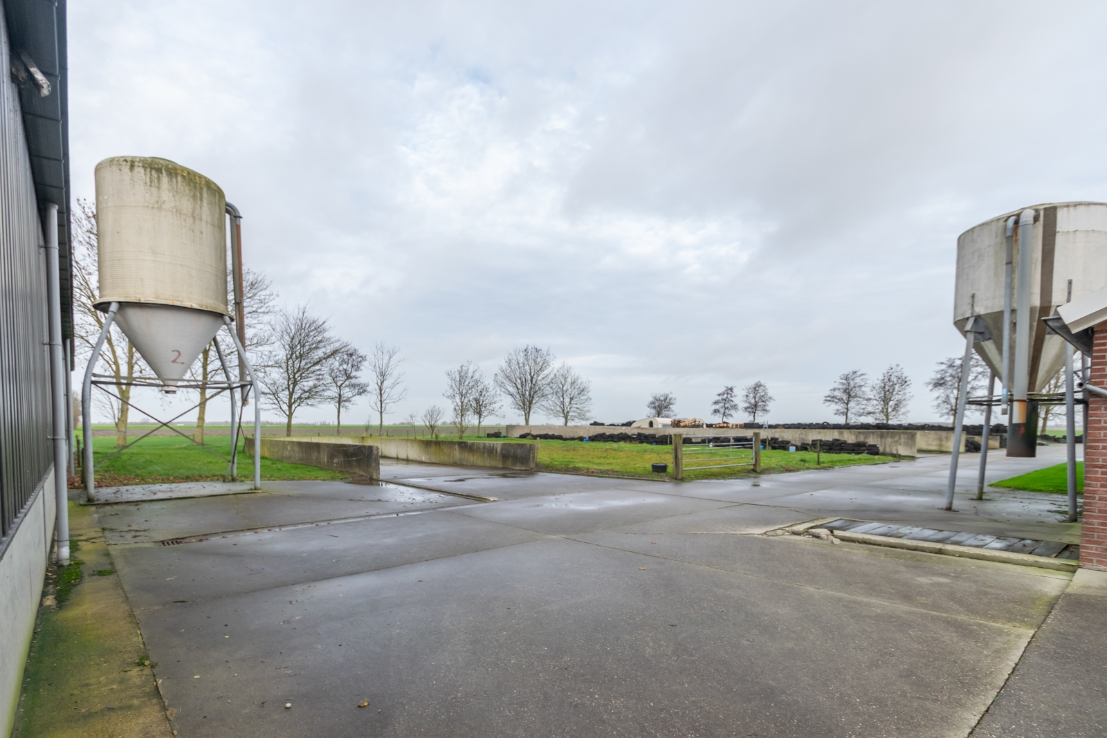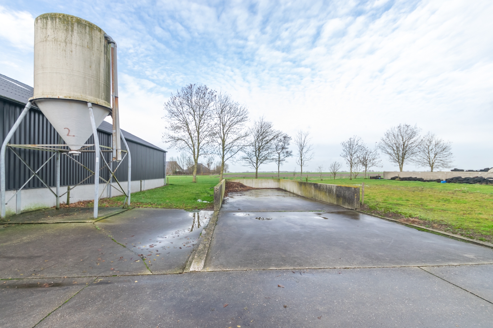 Het erf is overzichtelijk ingericht en goed toegankelijk voor voertuigen en materieel. De vrije ligging zorgt voor rust en een open uitzicht over de omliggende landerijen.