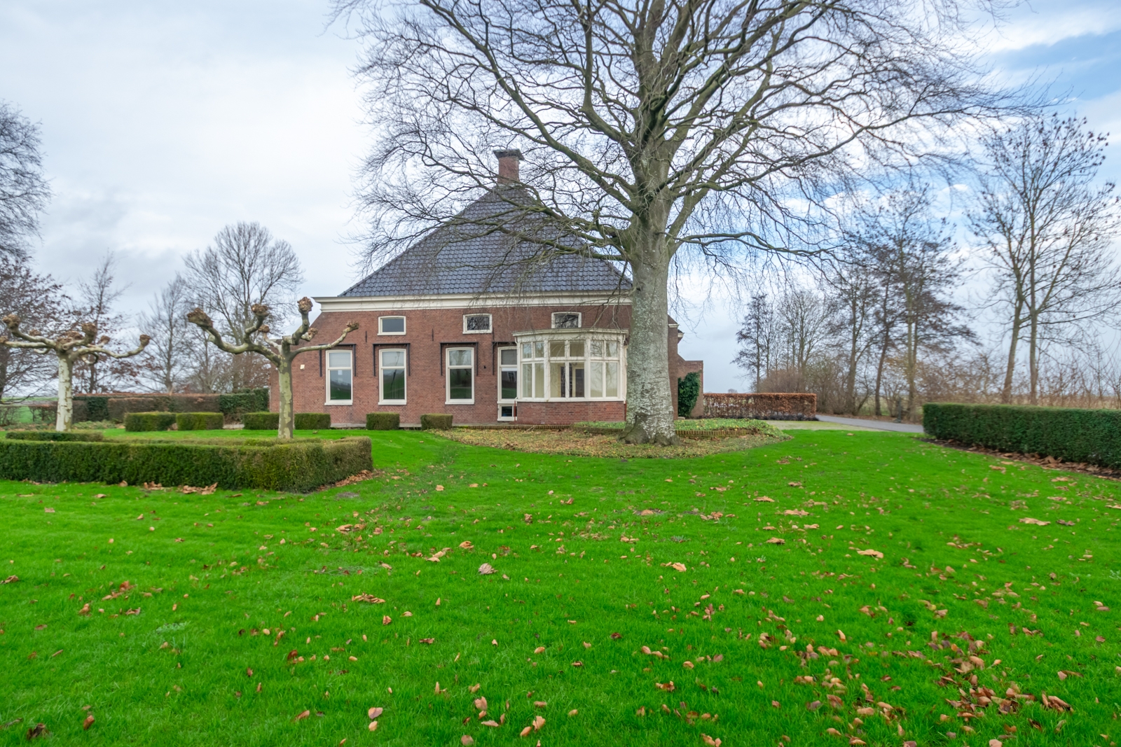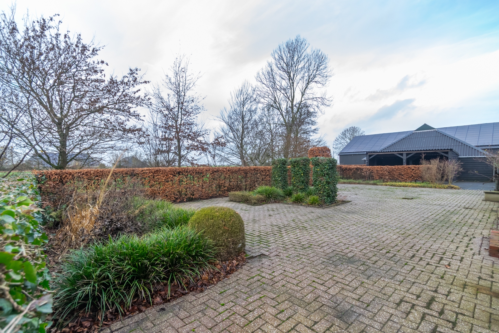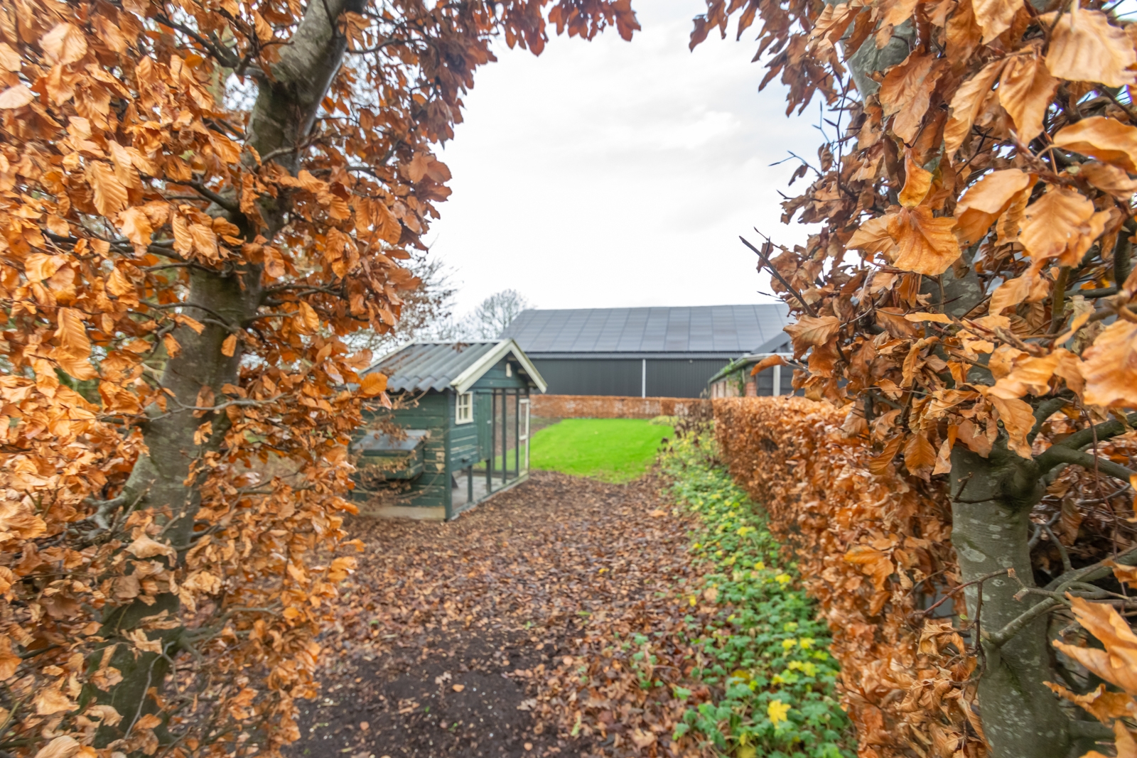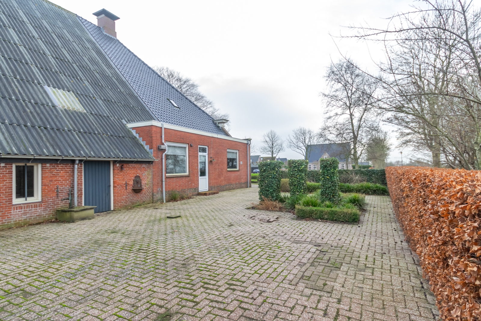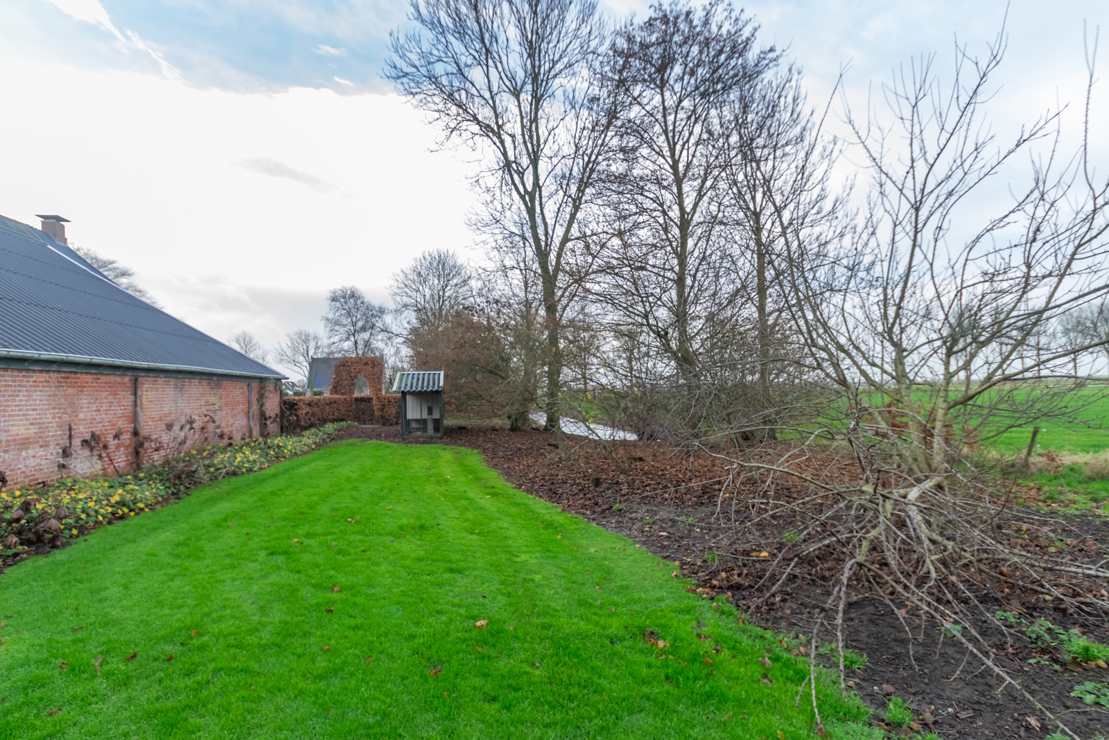 Het erf is overzichtelijk ingericht en goed toegankelijk voor voertuigen en materieel. De vrije ligging zorgt voor rust en een open uitzicht over de omliggende landerijen.