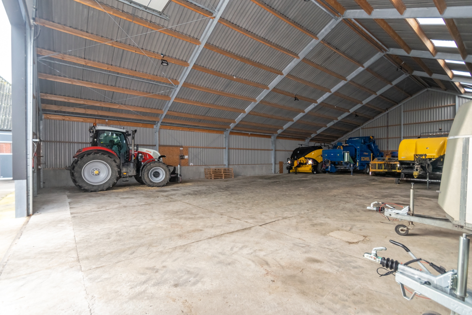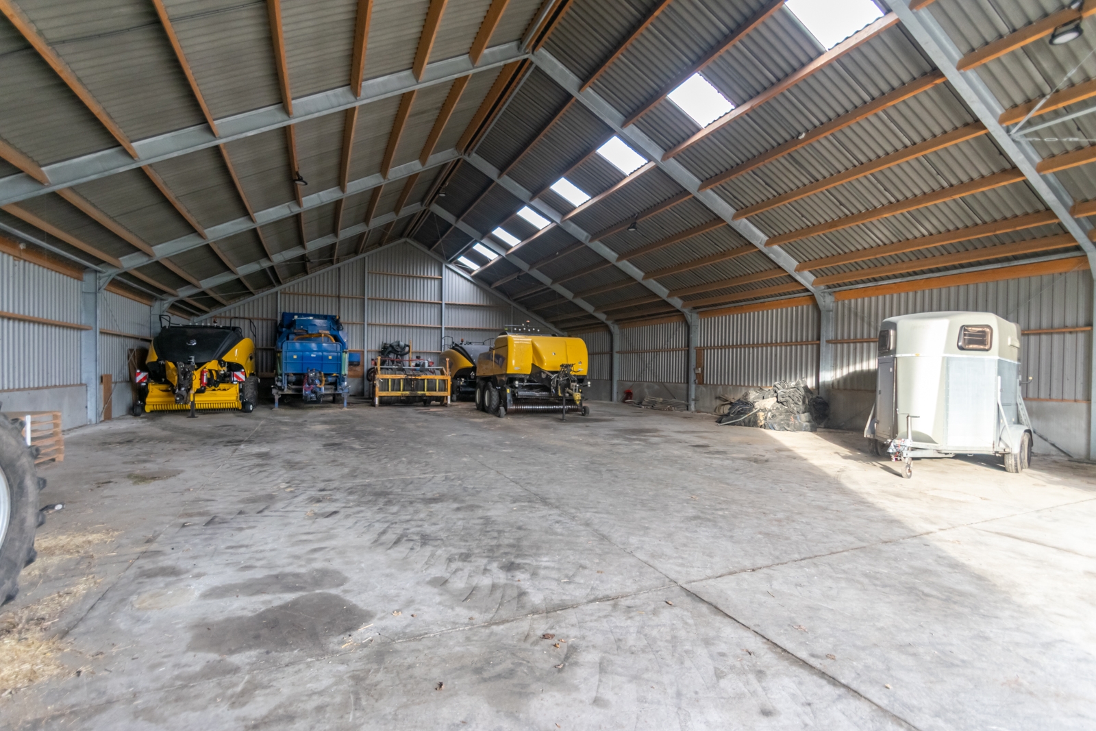 Op het erf staan meerdere ruime schuren en bijgebouwen. Het betreft onder andere een oudere, aangebouwde stenen garage van circa 180 m², een nette, ruime schuur voor machines van circa 600 m² en een grote stal van circa 1.218 m². Samen zorgen deze gebouwen voor een zeer royale hoeveelheid bergruimte en gebruiksruimte.