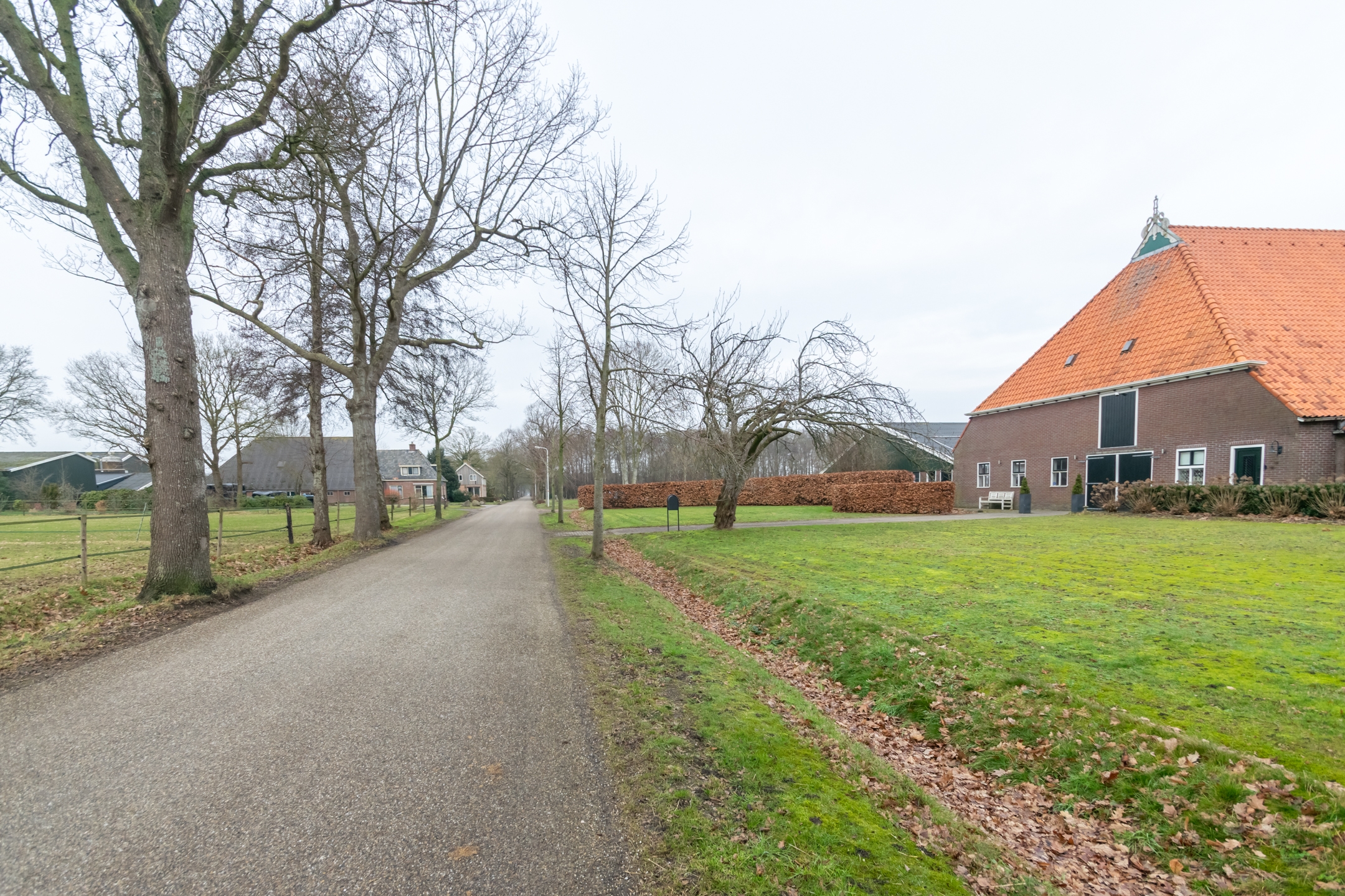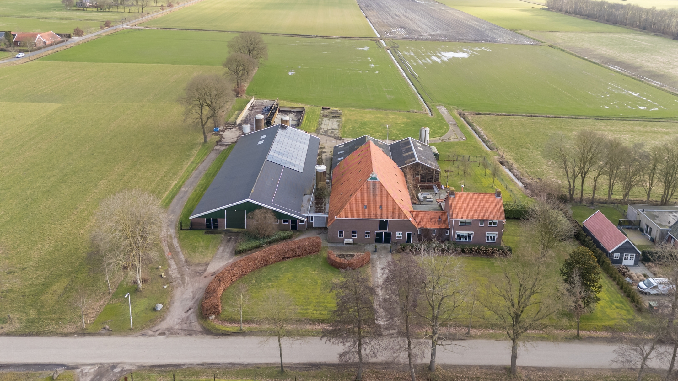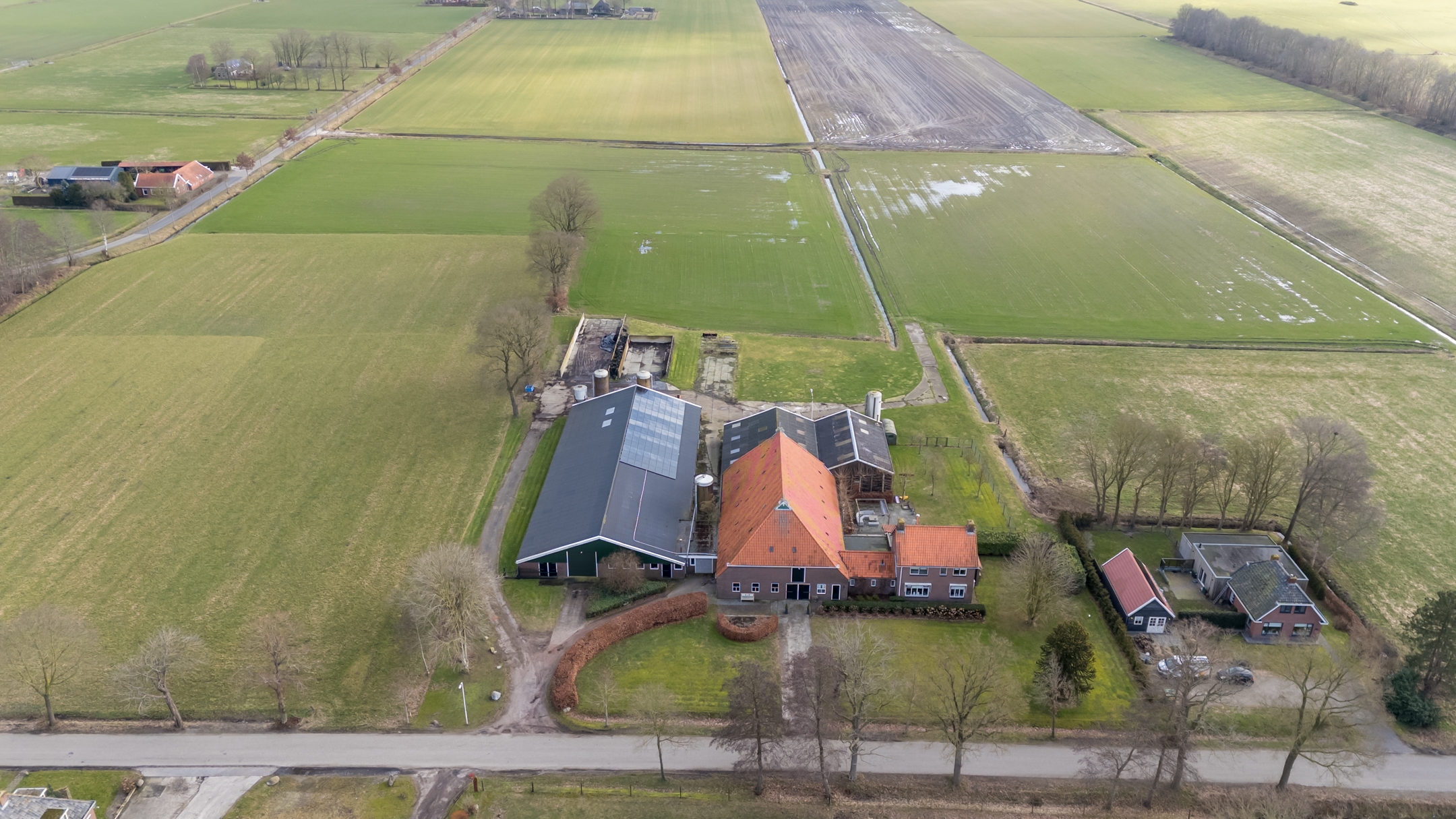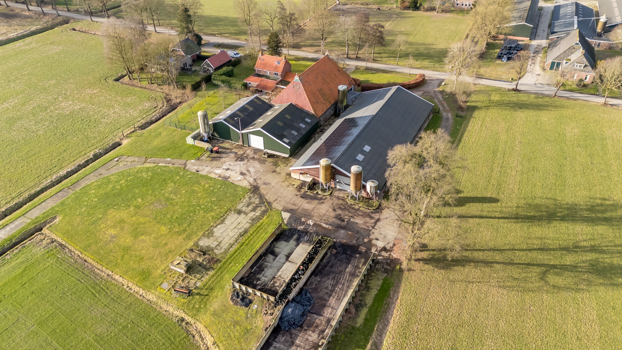 Het erf is ruim en overzichtelijk opgezet. De situering en perceelgrootte zorgen voor een vrij en landelijk karakter met voldoende ruimte rondom de bebouwing.