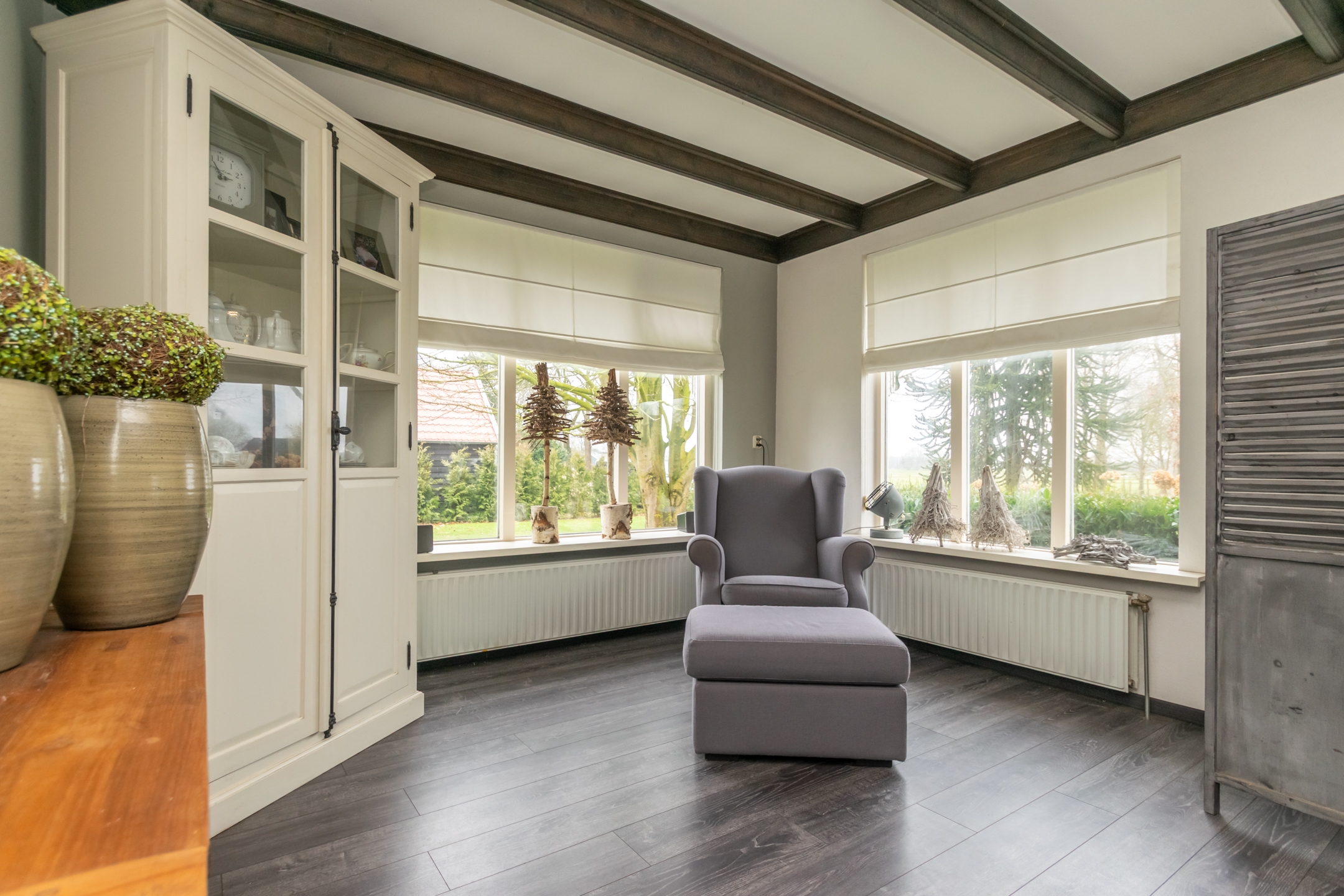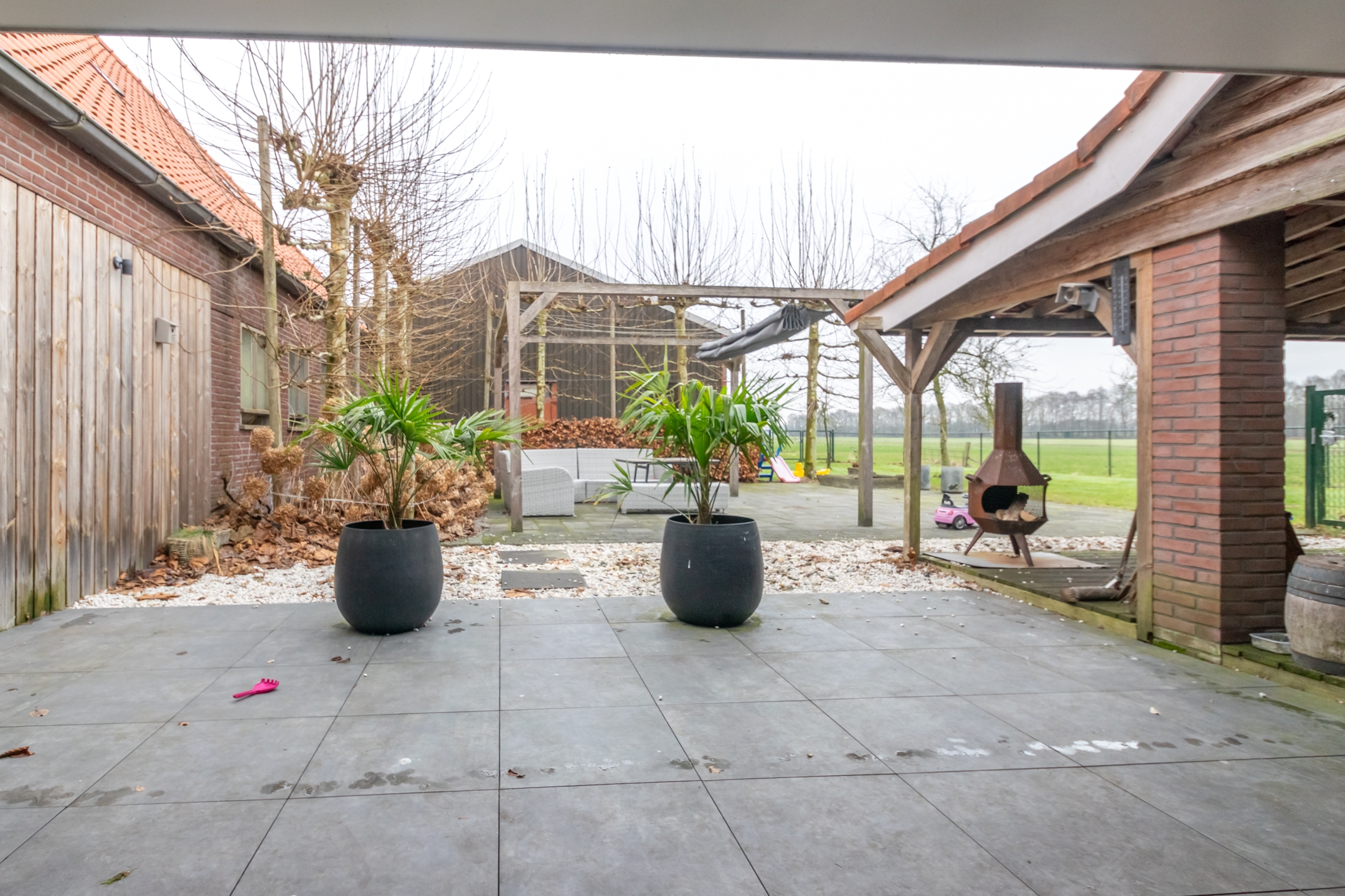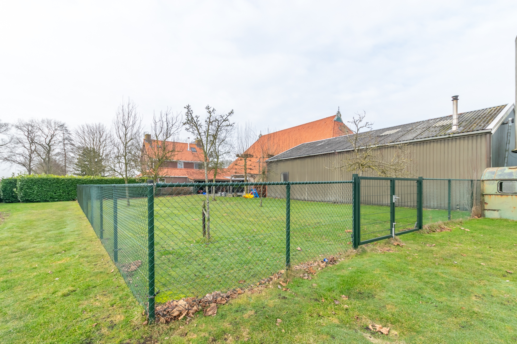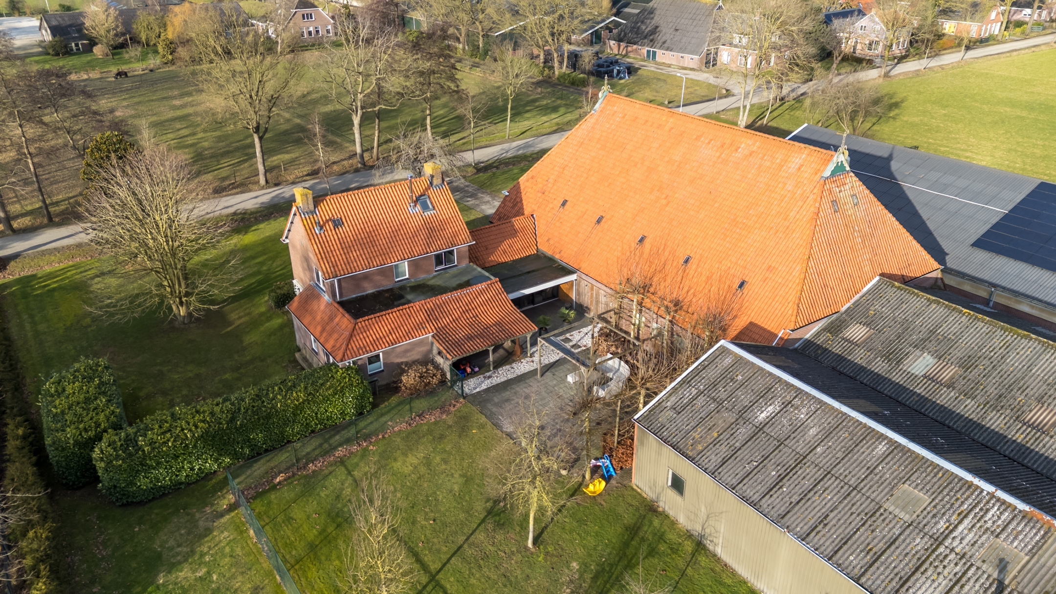 Het erf is ruim en overzichtelijk opgezet. De situering en perceelgrootte zorgen voor een vrij en landelijk karakter met voldoende ruimte rondom de bebouwing.