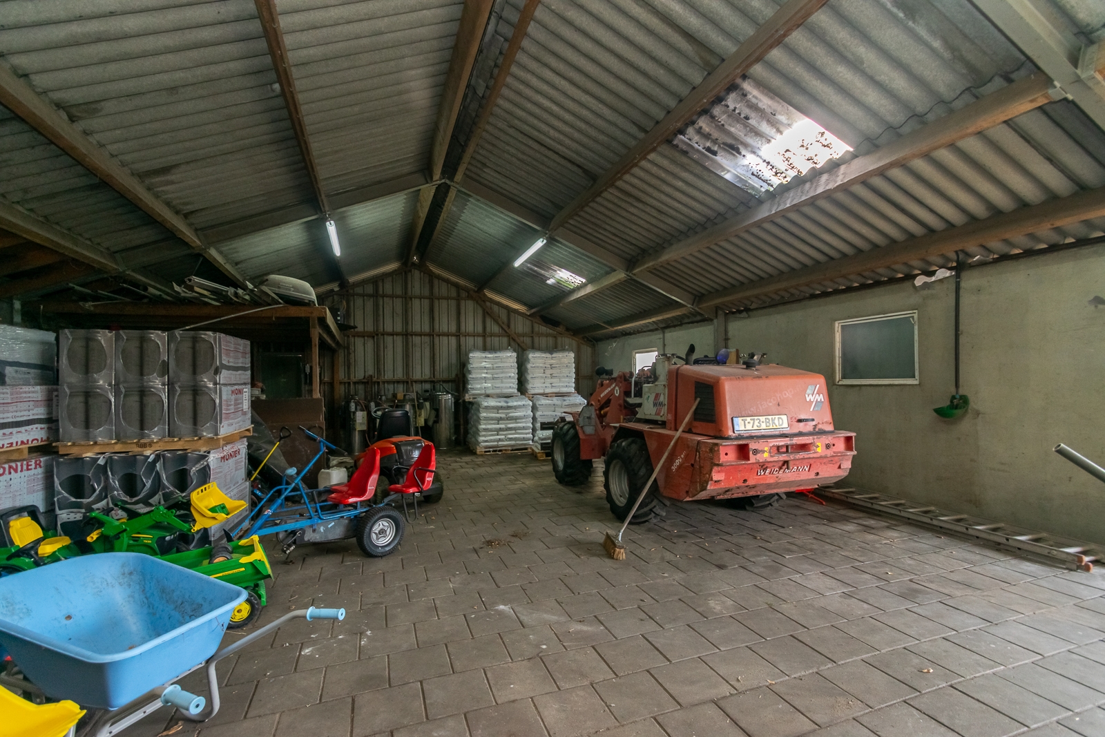 Tegen deze ruimte is een garage gebouwd. In het verlengde van de eierinpakruimte is een opslagruimte gebouwd
