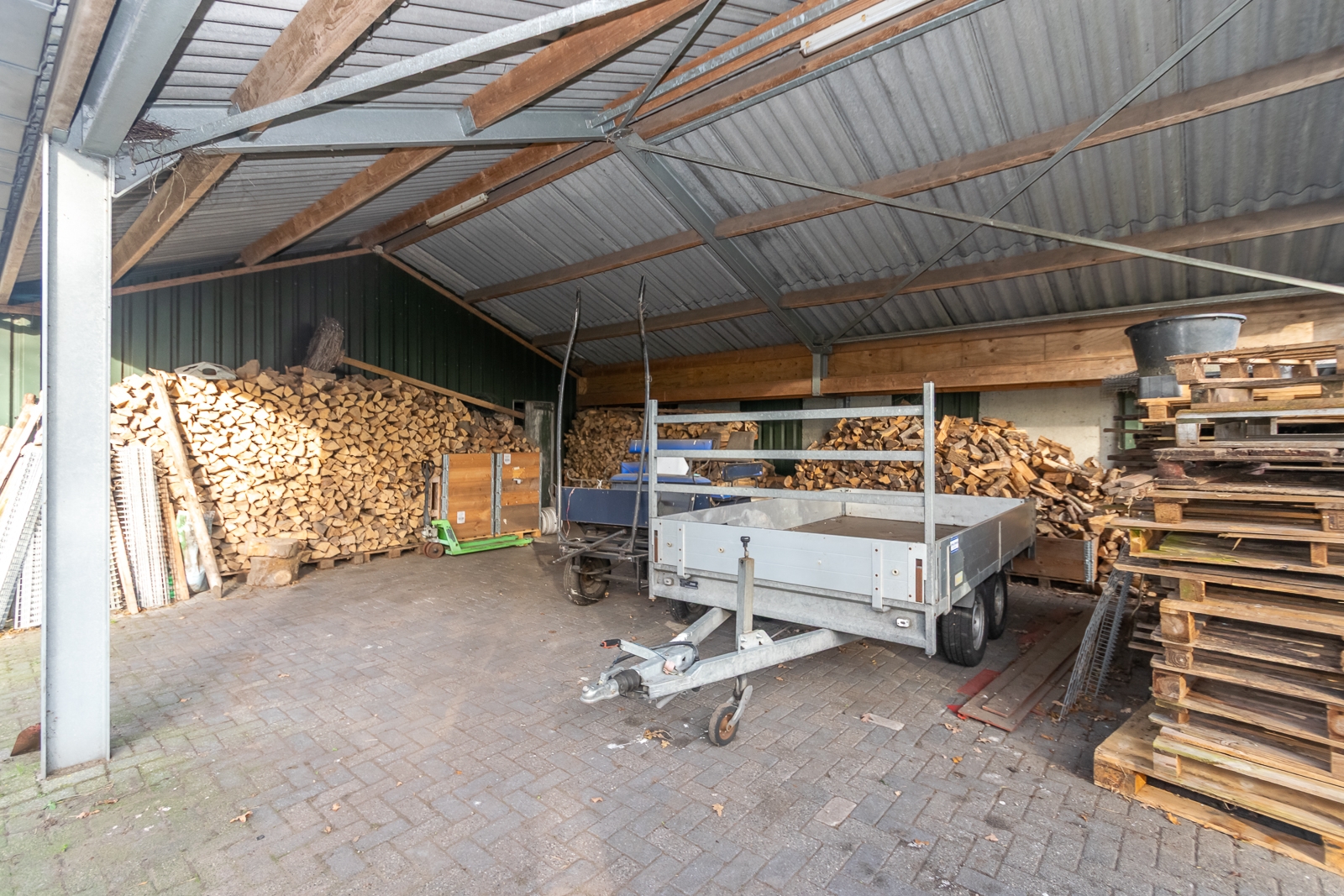 Inrichting: Hardhouten beunen met 2 stallen van Gent legnesten en 1 stal Jansen legnesten